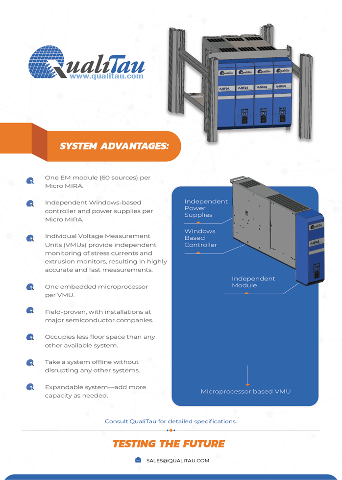 The MIRA modular system offers a wide range of configurations to meet testing requirements for EM, Contact EM, Stress Migration, TSV, and Silicon Photonics. The MIRA mainframe can support any combination of up to four similar or different application modules, providing maximum flexibility for diverse testing needs.